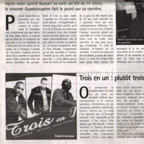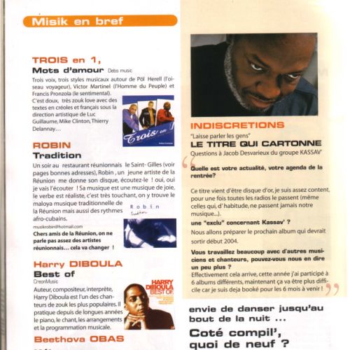 En début 2012: Il collabore sur le maxi single "trésor" avec Thierry MOUEZA un ami de longue date.