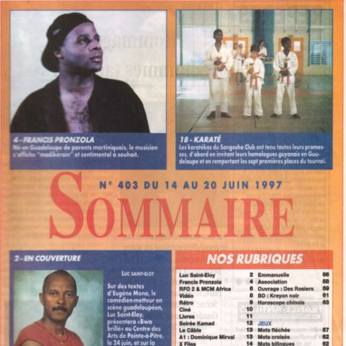 Né en GUADELOUPE, Francis PRONZOLA s’intéresse très tôt à la musique. Il se met à écrire des textes sur la vie des gens qu’il côtoie.